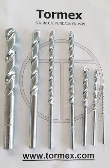Brocas para perforar concreto: Brocas para perforar concretos regularmente fabricadas en acero al cromo con puntas de carburo de tungsteno algunas de valor más elevado tienen zancos recto para facilitar introducción a los taladros