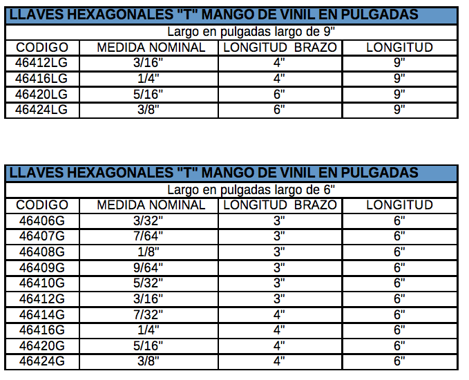 CON MANGO DE VINILO FRECEN UN MEJOR AGARRE MAYOR CONFORT QUE UNA LLAVE EN “T”.