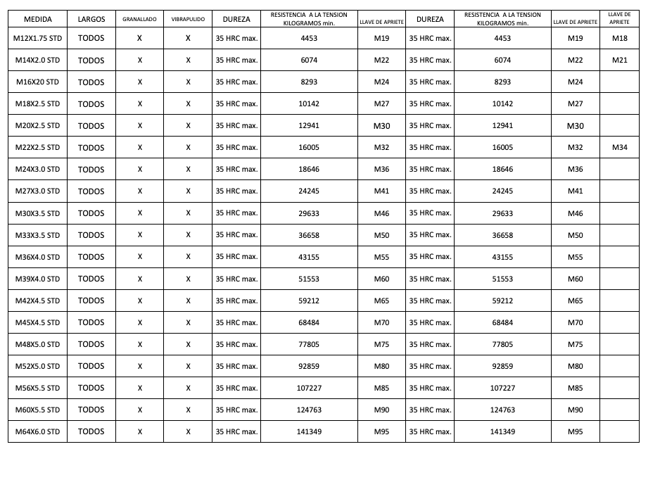 Tornillería para usos generales La producción actual de tornillería está muy automatizada tanto en lo que respecta a la estampación de la cabeza como a la laminación de la rosca. Por lo tanto es fácil encontrar en TORMEX el tornillo que se necesita. Los tornillos normales diferencian su calidad en función de la resistencia mecánica que tienen. La norma (EN ISO 898-1) establece el siguiente código de calidades 4. 6, 5. 6, 5. 8, 8. 8, 10. 9 y 12. 9. En cuanto a dimensiones todas están normalizadas por normas DIN e ISO, TORMEX por fabricar con forja caliente los tornillos son grandes en rosca métrica std y finas por ejemplo con cabeza hexagonal, oscilan entre M12 y M64 El tornillo deriva directamente de la máquina simple conocida como plano inclinado y siempre trabaja asociado a un orificio ciego roscado o tuerca.