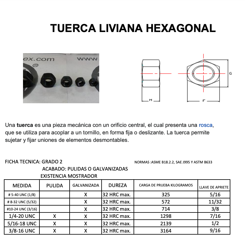 NORMAS :ASME B18.2.2, SAE J995 Y ASTM B633